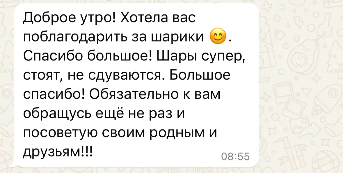 Однако, если речь идет об оформлении более строгих и деловых событий, как, например, презентации или семинары, мы также предлагаем обычные воздушные шары без рисунка. Этот вариант отлично подойдет для создания официальной и профессиональной атмосферы на вашем мероприятии. Наше портфолио насчитывает множество успешно реализованных проектов, и мы с удовольствием воплотим в жизнь ваши идеи и творческие замыслы.