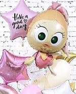 Фольгированный воздушный шар в виде фигуры. Имеет встроенный клапан. Приспособлен под гелий. Фольгированные воздушные шары изготавливаются из тонкой миларовой пленки, позволяющей шару не сдуваться в течении нескольких дней.